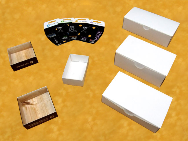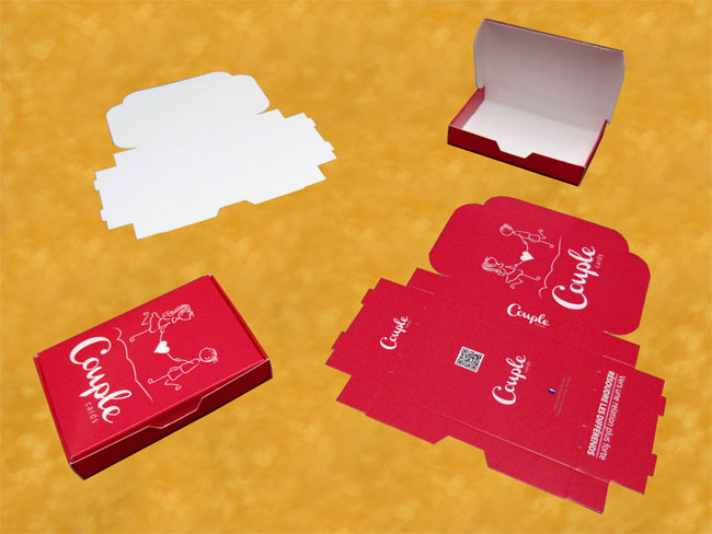 Nous proposons la fabrication de ces étuis à plat / boîtes à plat en carton sur-mesure à partir de 1 pièce. Il est à noter qu’il est nécessaire d’avoir un outil de découpe qui est une matrice qui sert à donner la forme au carton. Selon la conception et le format nous pouvons les fabriquer en petite, moyenne et grande quantité (page domaine). Pour les finitions, visitez la page finition étuis.