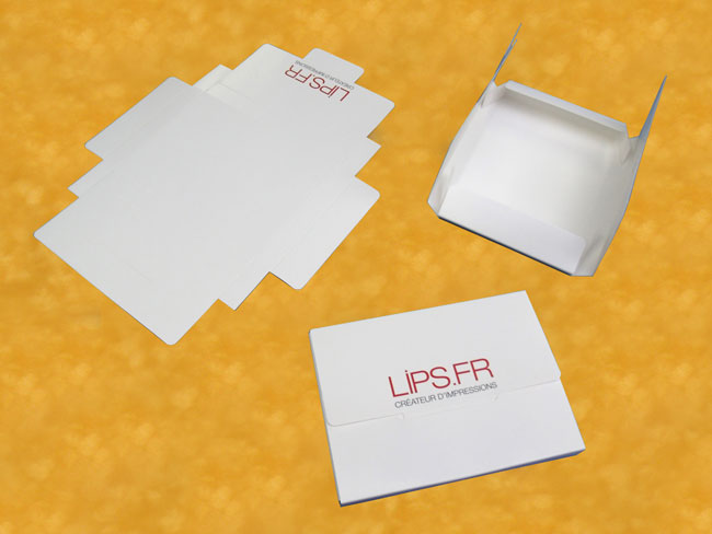 Ces étuis à plat ou boîtes à plat en carton sont pratiques pour emballer et/ou regrouper des produits. Les professionnels des arts graphiques ont recours à ces étuis / boîtes à plat pour conditionner les cartes en tout genre (cartes de visite ou cartes postale...) afin d’avoir une valeur ajoutée au produit de base plutôt que de mettre par exemple un elastique... Bien évidemment ces étuis peuvent être utiles pour bien d’autre produits