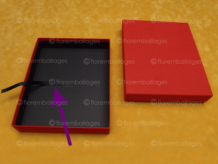 Pour rendre votre coffret pratique et attrayant, nous proposons l’ajout d’un ou plusieurs rubans - galons plats pour le fermer ou pour permettre une meilleure préhension du contenant. Apposés à l’extérieur, ces rubans ou galons peuvent apporter une touche plus personnelle aux coffrets, ils l’habillent et l’embellissent encore plus si la couleur choisie du galon est en osmose avec la couleur de celui-ci. Ils peuvent aussi être dans une couleur complémentaire ou en parfaite adéquation avec la couleur du coffret. Apposés à l’intérieur de ce dernier, ces rubans - galons simplifieront l’extraction de n’importe quel contenant rigide pour lequel le coffret a été fabriqué aux dimensions exactes (livre, album photo...). Nous travaillons avec des rubans plats sans impression, mais les rubans imprimés peuvent nous être fournis.