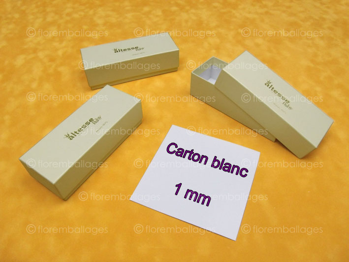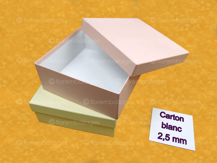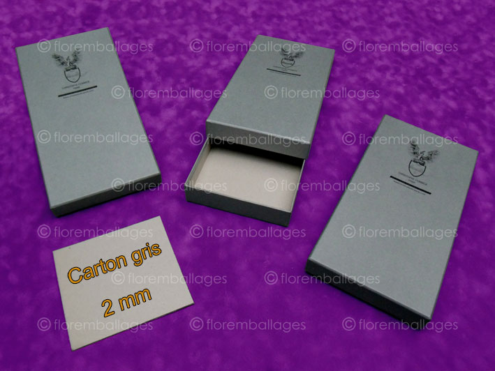 Pour la fabrication des coffrets / boîtes luxe, l’appréciation visuelle du carton gris ou du carton blanc ne se fera que lorsque le coffret sera ouvert parce que l’extérieur est lui habillé / recouvert et rembordé d’un papier blanc, coloré ou imprimé (voir page finition et habillage). Alors la couleur du carton ne sera dévoilé que lorsque le coffret sera ouvert (si la fabrication ne comporte pas de coloris spécifique ou de visuel imprimé à l’intérieur du coffret).