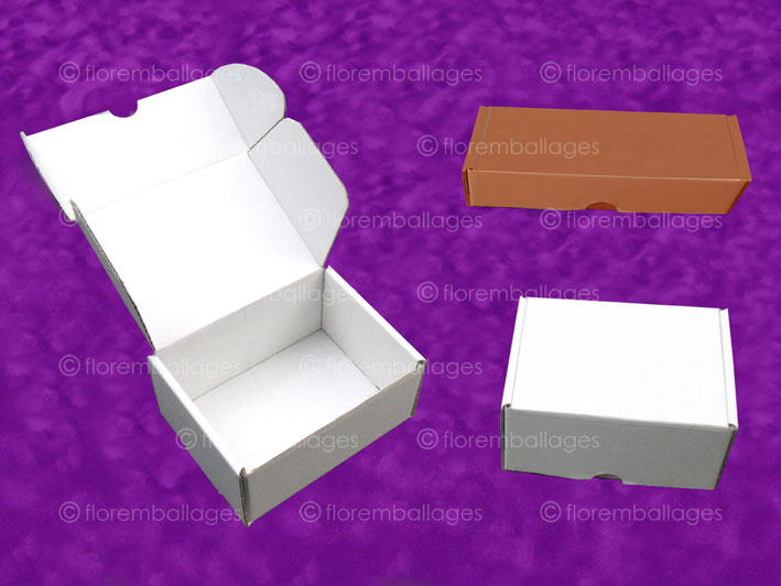 C'est une boîte carton exclusivement fabriquée en carton micro cannelure (brune / brune avec cannelure brune ou blanche / blanche avec cannelure brune), l'épaisseur de ce carton est de