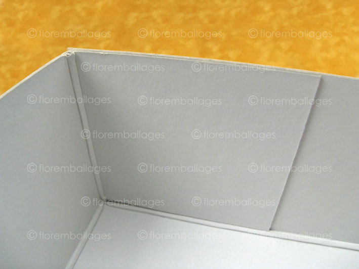 Autres appellations possibles : boîte avec coins redoublés et collés, boîte avec 4 coins collés.