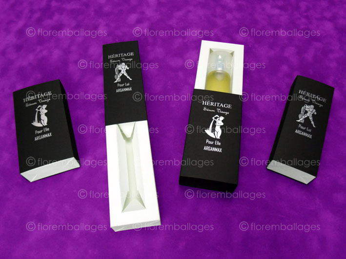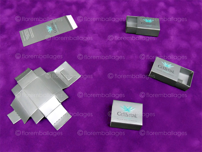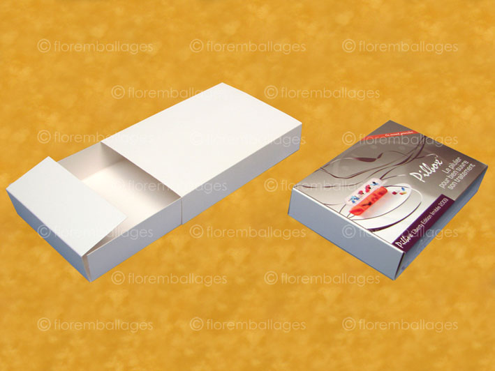 Un étui avec glissière ou boîte fourreau avec glissière est un étui composé de 2 éléments. L'étui est conditionné à plat et nécessite une certaine manipulation de mise en forme. Il peut être totalement à plat ou peut avoir eu 2 côtés opposés de collés (pour renforcer ses bords et sa structure après montage). La glissière a nécessité le collage d'une patte, cette glissière est conditionnée pliée, la mise en forme est rapide et l'assemblage des 2 éléments (étui + glissière) se fait très simplement. L'étui en carton qui coulisse dans la glissère peut coulisser dans 2 sens car la glissière a 2 côtés ouverts. Leurs utilités sont très vastes, ils peuvent être fabriquer pour contenir toutes sortes de confiseries (chocolats, macarons, bonbons...), toutes sortes d'articles divers conditionnés en vrac (allumettes, articles de papeterie...) mais ils conviennent aussi à toutes autres utilisations. Etant un produit pliant, le poids et le format du contenant ne doit pas être démesuré. Niveau personnalisation / impression, ces étuis avec glissière - boîte fourreau avec glissière sont imprimables autant sur la glissière que sur l'étui coulissant (impression extérieure mais également possible dans l'intérieur). L'impression est possible partiellement (logo, phrase...), en totalité sur toutes les faces (motifs, fond de couleur...). Pour les petites séries, l'impression numérique est privilégiée (monochromie à la quadrichromie), pour les moyennes et grandes quantités, l'impression offset sera plus adaptée (monochromie à la quadrichromie avec possibilité d'un pantone + vernis acrylique de protection). Nous proposons aussi le marquage à chaud (page impression / personnalisation étuis pliants). Vous pouvez retrouver dans la page "coffret avec glissière" des coffrets luxe avec glissière ou a tiroir mieux adaptés pour des formes et des volumes plus conséquents. Il est possible d'ajouter une fenêtre (SANS FILM PLASTIQUE DE PROTECTION) sur ces étuis avec glissière / boîte fourreau avec glissière (format et une forme sur-mesure).