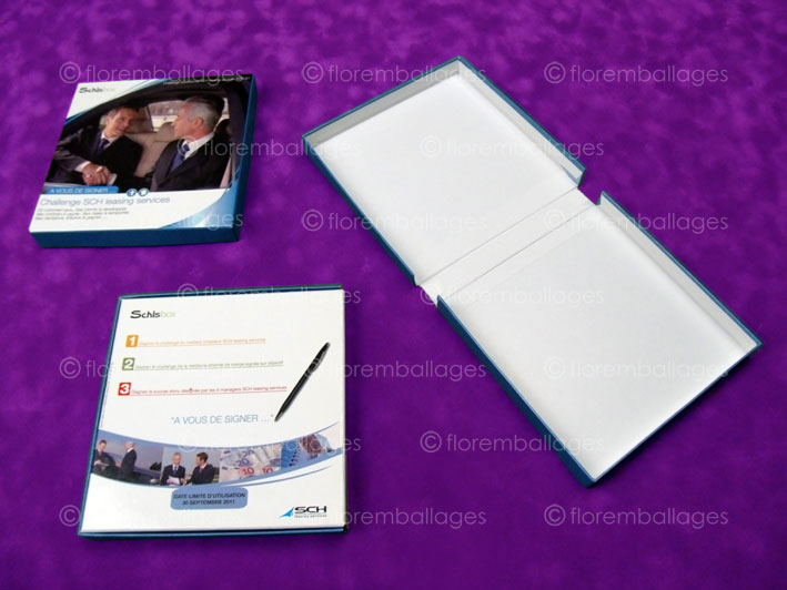 Visitez la page finitions des coffrets / boîtes luxe pour tout savoir sur les finitions possibles pour ces coffrets monocuvette / boîtes monocuvette en terme de revêtement, impression / personnalisation et calage.