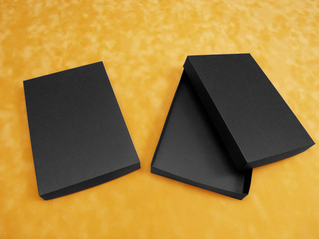 L‘emballage - boîte classique en carton est une boîte sobre et d’aspect naturel. Ce boîtage est travaillé dans un carton plat aussi appelé carton compact. Le carton peut être brut de couleur grise, contre collé recto ou recto-verso d’une feuille blanche soit directement teinté dans la masse (noir mat, vert, rouge etc...). L’avantage de ce boîtage est de ne pas avoir de papier de recouvrement et de tirer au maximum profit de l’aspect naturel de la boîte en carton selon l’image qu’on veut montrer.