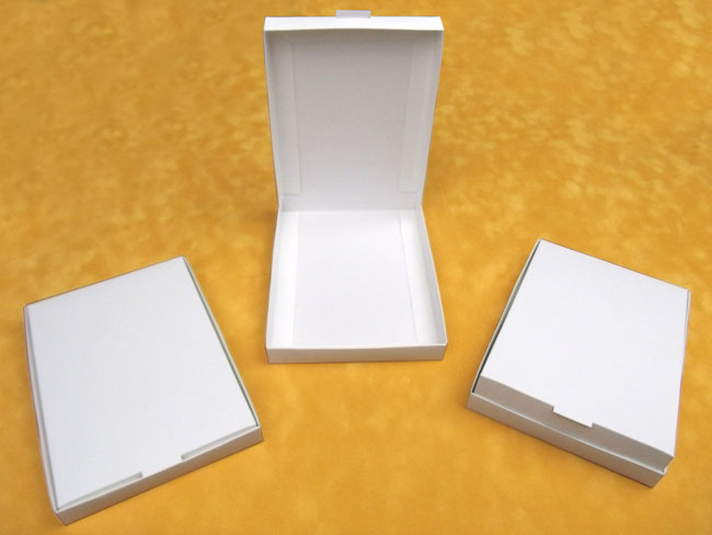 Dans la même gamme de fabrication avec carton en finition brute, nous fabriquons également des fonds de boîte en 4 coins collés (ou habillés), des boîtes avec couvercle à charnière (boîte avec couvercle attenant au fond), et des articles toujours en carton de type fourreau et porte revues.