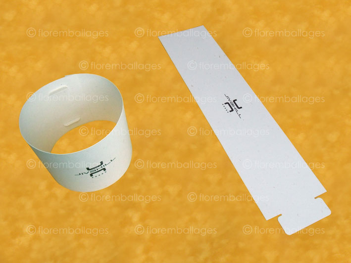 Autres appellations possibles : bandeaux cartonnés, glissières cartonnées, entourages carton, bandeaux personnalisés, glissières carton imprimées, bague carton avec impression, bagues cartonnées